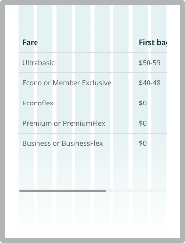 On small screens where table content exceeds the available space, tables become horizontally scrollable and use native controls to view all content.